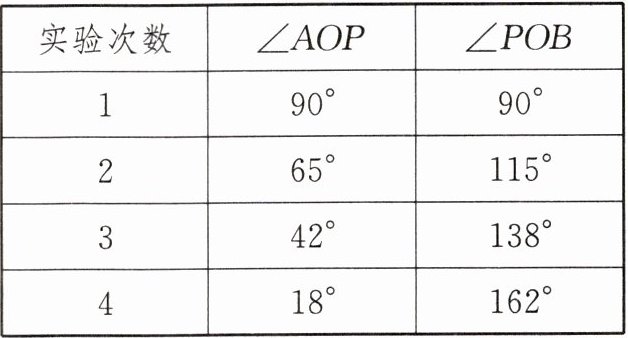 (3) 改变入射光的方向,依次记录实验数据如上表所示,分析实验数据可知:入射光线AO逐渐 (靠近/远离)法线ON;∠NOB与∠AON的大小 。