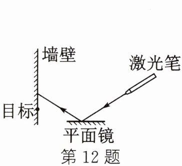 12. 如图所示,若要让反射光射中目标,在激光笔不动的情况下,可将平面镜 ( )