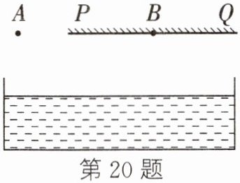 20. 如图所示为水位测量仪的示意图。A点与光屏PQ在同一水平面上,从A点发出的一束与水平面成45°角方向不变的激光,经水面反射后,在光屏上的B点处形成一个光斑,光斑位置随水位变化而发生变化。