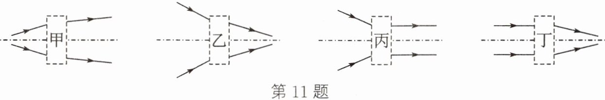 11. 下图中画出了光线通过甲、乙、丙、丁透镜的示意图(透镜在虚线框内未画出),下列说法正确的是( )