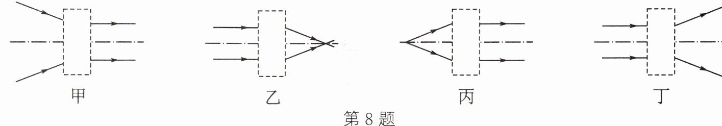 8. 在如图所示的光路图中,分别填入合适的透镜。其中对光有会聚作用的是图( )