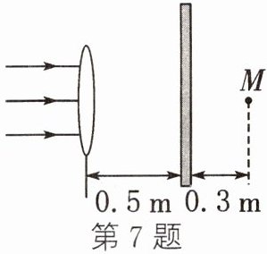 7. 如图所示,把一凸透镜放在平面镜前,当用眼睛观察镜子时,光束似乎是从M处发散开来的,则光束会聚处和M点的距离是______m,该凸透镜的焦距是______m。