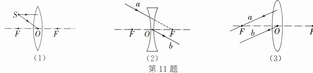 11. (1)请在图中画出从光源S射向透镜的两束光的折射光路。