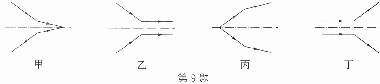 9. 如图画出了光线通过透镜(图中未画出)的情形,其中是凹透镜的有( )