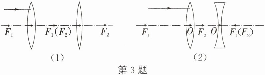 3.(1)如图所示$,F_1$和$ F_2$分别是两个凸透镜的焦点,且在两透镜中央的两个焦点$ F_1、$$F_2$重合,一束光线通过两个凸透镜,画出这条光线的光路图。