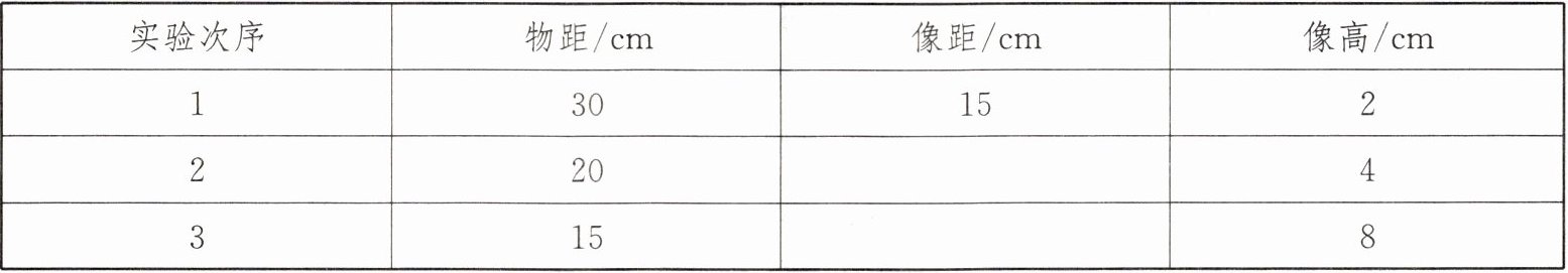 |实验次序|物距/cm|像距/cm|像高/cm|