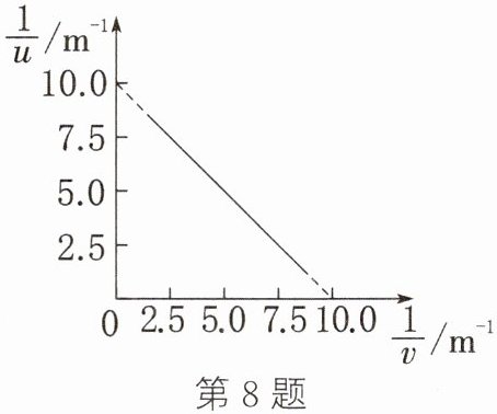 8. 某同学利用光具座、透镜、蜡烛、光屏探究凸透镜成像规律,记录物距u、像距v得到的图像如图所示,则( )