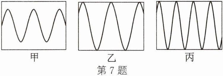 7. 如图所示,分别是甲、乙、丙三个物体发出的声音在示波器上显示的波形。下面关于三者发出声音的特性描述正确的是( )