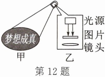 12. (2024·苏州改编)如图甲所示是公共场所的宣传投影灯,装在高处的投影灯照在地面上出现图案,其内部结构如图乙所示。下列说法正确的是( )