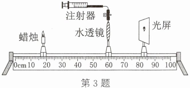 3.(2024·河南)在“爱眼日”宣传活动中,小明用如图所示的装置研究眼睛的成像,此时烛焰在光屏上成清晰的像,用此模拟正常眼睛的成像。接下来下列操作可模拟近视眼的是( )