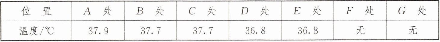 | 温度/℃ | 37.9 | 37.7 | 37.7 | 36.8 | 36.8 | 无 | 无 |
