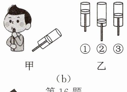 (3)如图(b),小漫自己动手制作了一个哨子,在筷子上缠一些棉花,做成一个活塞。哨声是由管内的______振动而产生的。吹哨时上下推拉活塞,音调最高的是图(b)乙中的______。