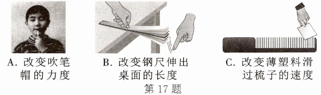 17. 如图所示,小明设计了下面几个实验探究声音的特征: