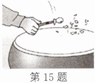 15. 如图所示,用鼓、鼓槌、碎纸屑探究声音的响度与发声物体振动幅度是否有关。
