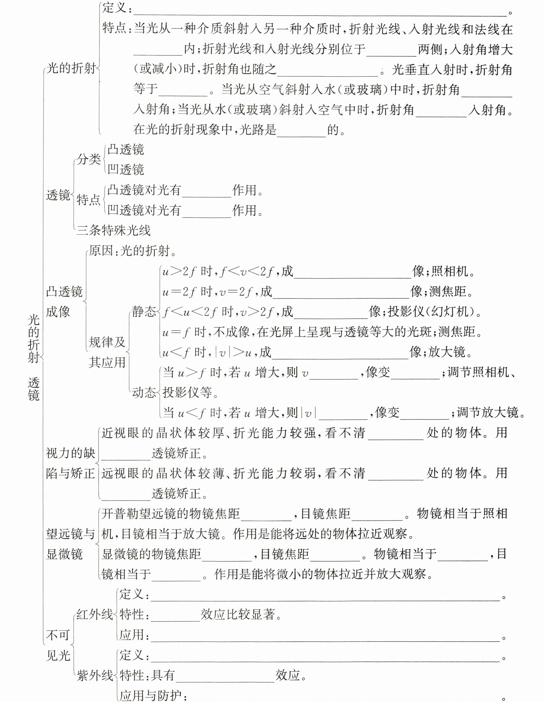本题主要考查光的折射,透镜成像原理以及视力的矫正。题目给出了光的折射的定义,特点,透镜的分类,凸透镜和凹透镜的特点,凸透镜成像的规律及其应用,以及视力的缺陷与矫正等知识点,需要根据这些知识点来填空。