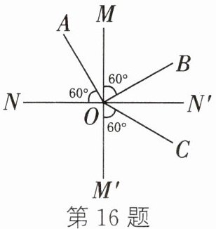 16. 如图所示,有一束光从某种介质斜射入另外一种介质时,在界面上同时发生了反射和折射,其中AO是入射光线,折射角是30°。