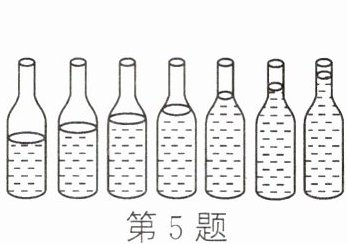 5. 小利在7个相同的玻璃瓶中灌入不同高度的水,制成了一个水瓶琴,如图所示。对着瓶口吹气,发出的声音是由瓶中______振动产生的。依次吹每个瓶的瓶口,发出声音的音调不同,越靠近______(左/右)端音调越高。