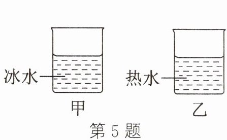 5. 小宇将冰水和热水分别装入常温下的两只透明烧杯中,如图所示。过了一会,发现两只烧杯的杯壁上都有小水珠出现。以下说法正确的是( )