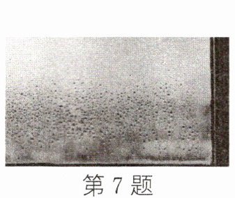 7. 如图所示,冬天,教室里面开着空调,窗玻璃的______(内/外)侧会出现小水珠,而夏天则出现在窗玻璃的______(内/外)侧,它是由水蒸气发生______(填物态变化名称)而形成的。