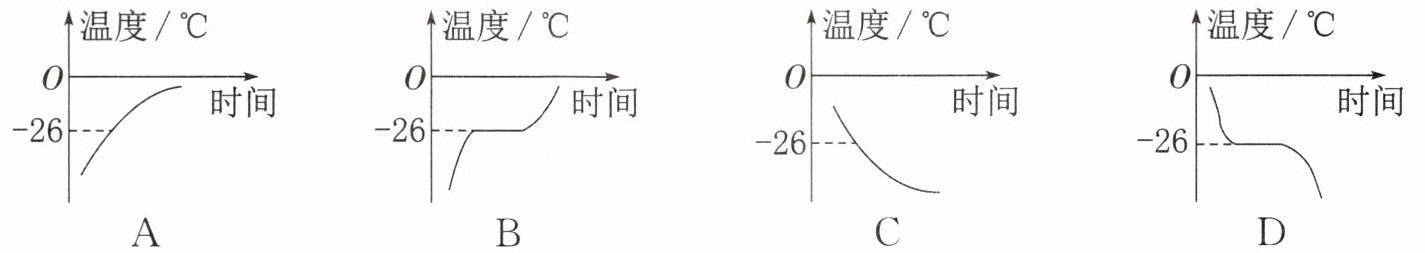 11. 在“祝融号”火星车的顶部,有一个集热器装置,如图所示,里面装有一种叫正十一烷的物质。该物质的熔点为-26℃。其凝固时温度随时间变化的图像为图中的( )