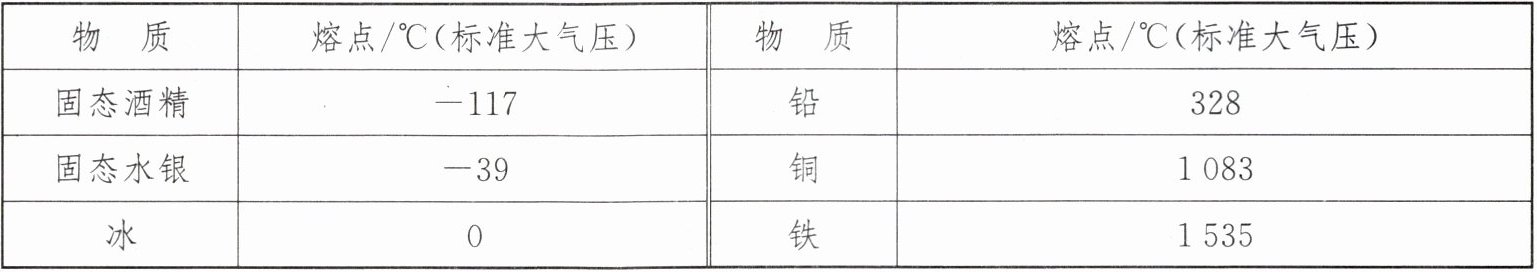 |物质|熔点/℃(标准大气压)|物质|熔点/℃(标准大气压)|