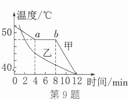 9. 小华用甲、乙两种物质做凝固实验,得到温度—时间图像如图所示,下列分析错误的是( )