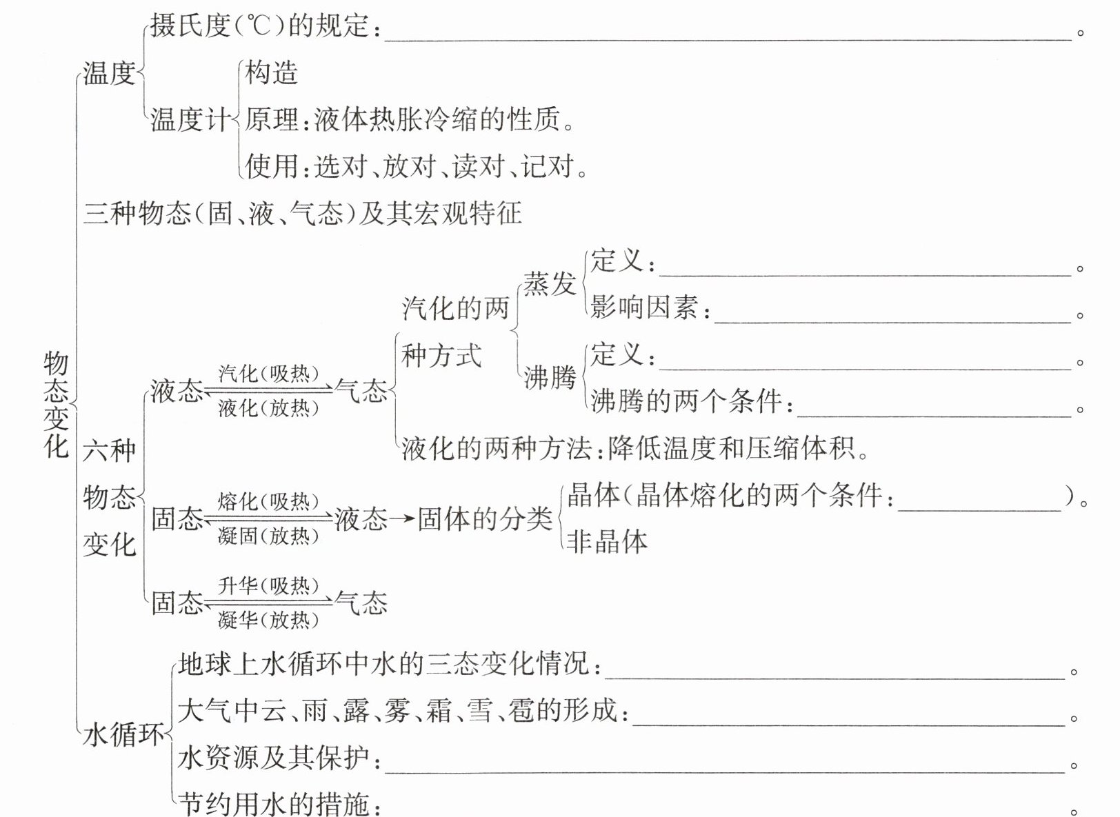 液态$\underset{液化(放热)}{\overset{汽化(吸热)}{\leftrightarrows}}$气态