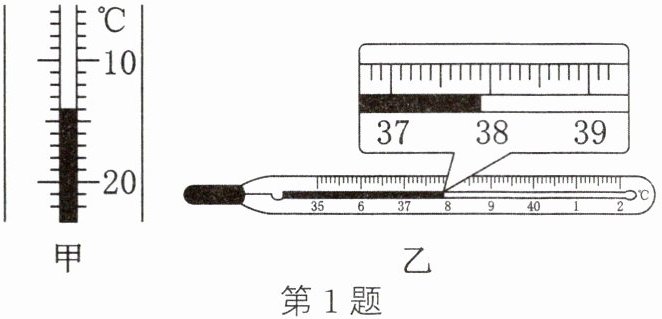 1. 常用的温度计是利用液体______的性质制成的,图甲温度计的示数是______;图乙体温计的示数为______。
