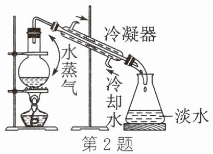 2. 由于水能够溶解多种物质,因此天然水总是溶有杂质,可以采用蒸馏的方法,除去水中的杂质,得到纯净的水。如图为实验室制取蒸馏水的装置,制取蒸馏水的过程中,先后发生的物态变化有______和______。装置中冷凝器的作用是采用______的方法使水蒸气转化为水。