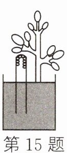 15. (2024·常州)盆栽养护应遵循"土壤含水不浇水,土壤干时要浇水"的原则。春季,小明自制"土壤含水显示仪",探测花盆内土壤是否含液态水。如图所示,中午将试管倒插入土壤深处,傍晚发现试管内上端出现水珠,说明土壤含液态水。从土壤含液态水到试管内出现水珠,发生的物态变化是( )