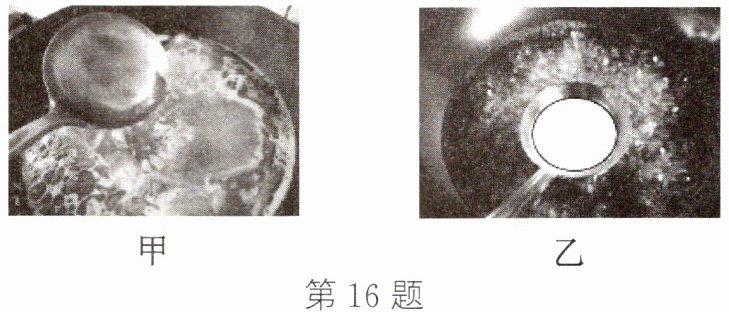 16. 小明帮妈妈煮饺子时发现,水沸腾时,用铁勺从锅中盛出一部分水,勺中的水就不再沸腾了,如图甲;再将勺子和水一起放回锅中时(注意,不是倒入),锅里的水依旧沸腾着,勺子里的水却不会沸腾,如图乙。关于这一现象,下列分析正确的是( )