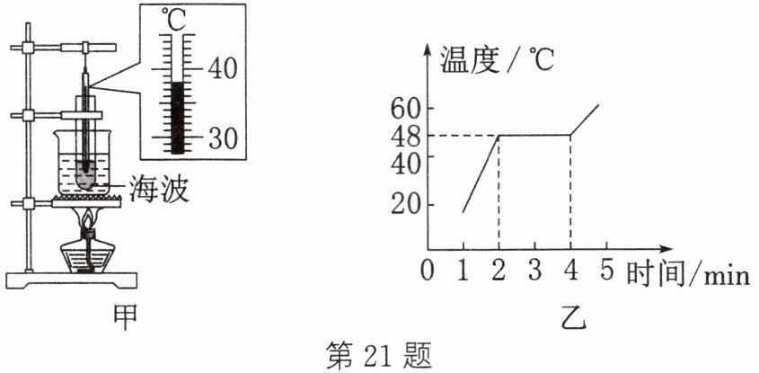 21. (2024·巴中)某同学利用如图甲所示的装置,来探究海波熔化时温度的变化规律,绘出图乙所示的图像。