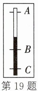 19. 如图所示为寒暑表,$40^\circC与10^\circC两条刻度线相距AB= 6\,cm$,刻度线 C 与刻度线 B 相距$BC= 3\,cm$。下列判断正确的是( )