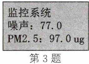 3. 工地设有噪声监测设备(如图所示),该设备的显示屏上显示数字77.0,它的单位是______,该装置显示了噪声的______(音调/响度/音色)。我们正常交谈时,声强级约______。