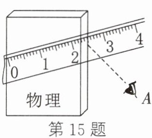 15. 小明用一把刻度尺,测量物理书的宽,他的测量方法如图所示。图中A点是他观察读数时眼睛的位置。