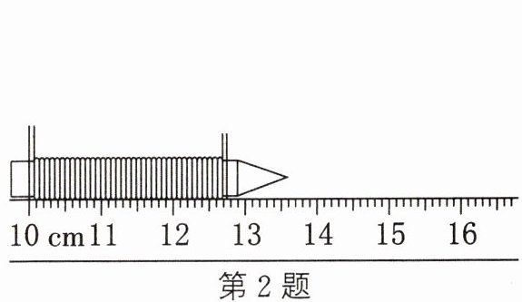 2. 如图所示刻度尺的分度值是______。用如图所示的方法测量细铜丝的直径,将细铜丝在圆柱体上紧密地排绕30圈后,用刻度尺测得这个线圈的长度是______cm,细铜丝的直径为______mm。