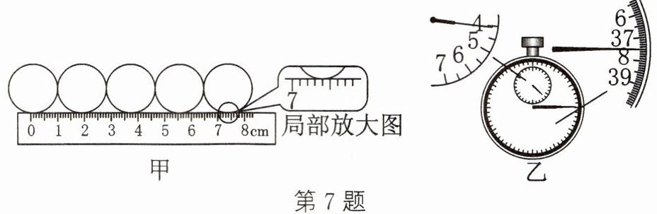 7. 如图所示,甲图中圆形物体的直径是______cm,乙图中停表的读数为______s。