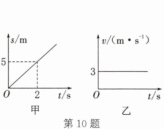 10. 如图所示,两个图像分别描述了做直线运动的甲、乙两物体的运动情况,根据图像得出的信息正确的是(C)