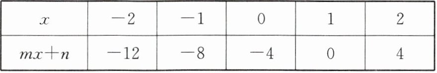 观察表格可知,当$x$的值每增加$1$时,$mx + n$的值增加$4$,说明$m = 4$。
