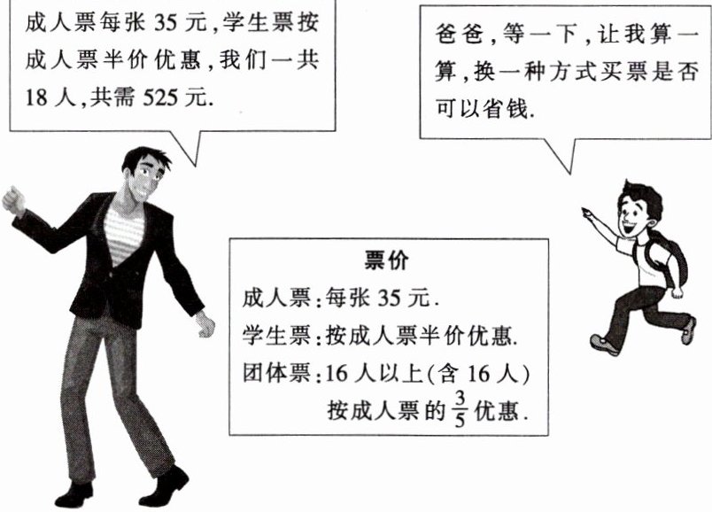 (2)团体票单价:$35×\frac{3}{5}=21$(元)