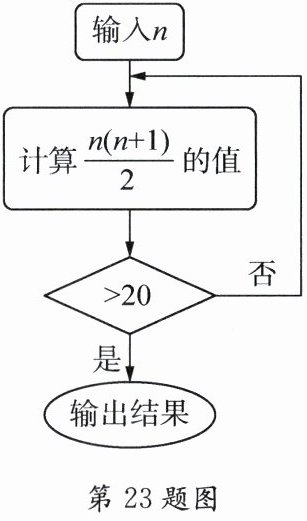 23. (7 分)小明设计了一个电脑程序,如图所示.当输入 $n$ 的值为 2 时,输出的结果是多少?