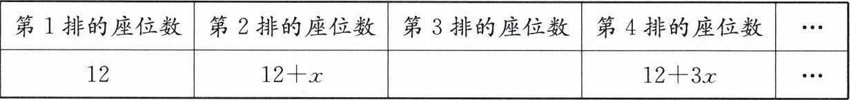 23. (7分)某校的一间礼堂,第1排的座位数为12,从第2排开始,每一排都比前一排增加x个座位.