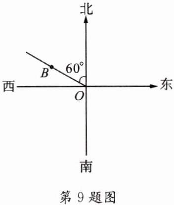 9. 如图,图中点 O 表示人民广场,点 B 表示真如镇,如果徐家汇在人民广场的西南方向,在真如镇的正南方向,试确定徐家汇的位置(用点 C 表示).