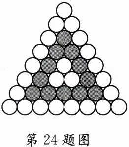 24. (8 分)已知大小一样的圆按如图所示的方式叠放.从上往下数,第一层有 1 个,第 2 层有 2 个,第 3 层有 3 个.