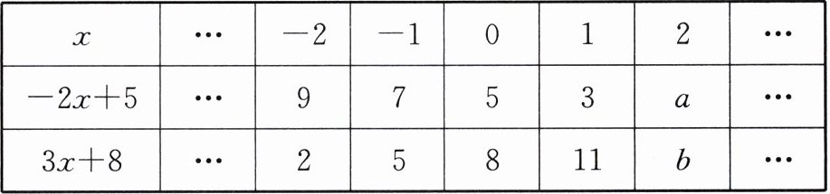 .(2)【归纳规律】表中$-2x + 5$的值的变化规律是:$x$的值每增加 1 时,$-2x + 5$的值就减小______.类似地,请写出$3x + 8$的值的变化规律:______.