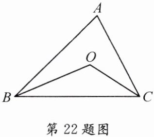22. 已知在任何一个三角形中,三个内角的和等于$180^\circ$.现有三角形ABC,BO和CO分别是$\angle ABC与\angle ACB$的平分线,如果$\angle A= 50^\circ$,试求$\angle BOC$的大小.
