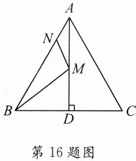 16. 如图,在等边三角形 ABC 中,AB=4,高 AD=3.4,M 是高 AD 上一动点,N 是边 AB 上一动点.