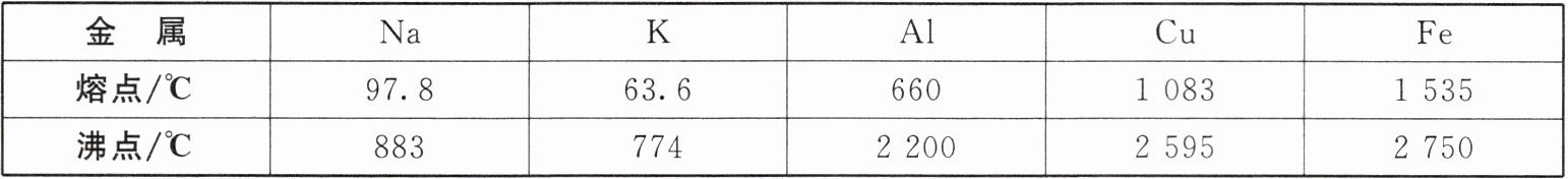 |熔点/℃|97.8|63.6|660|1083|1535|