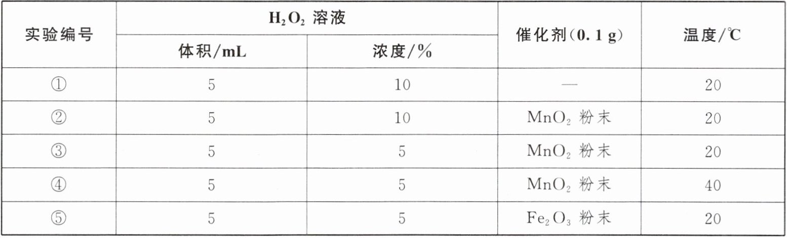 )|实验编号|$H_2O_2$溶液|催化剂(0.1g)|温度/℃|