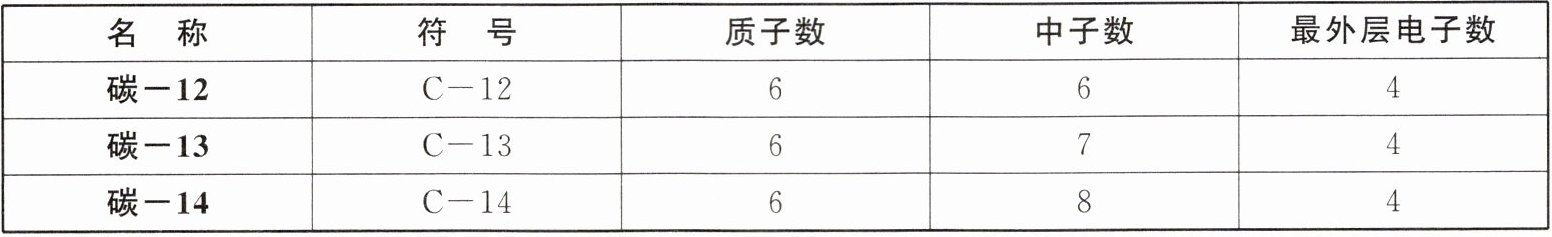 |名称|符号|质子数|中子数|最外层电子数|